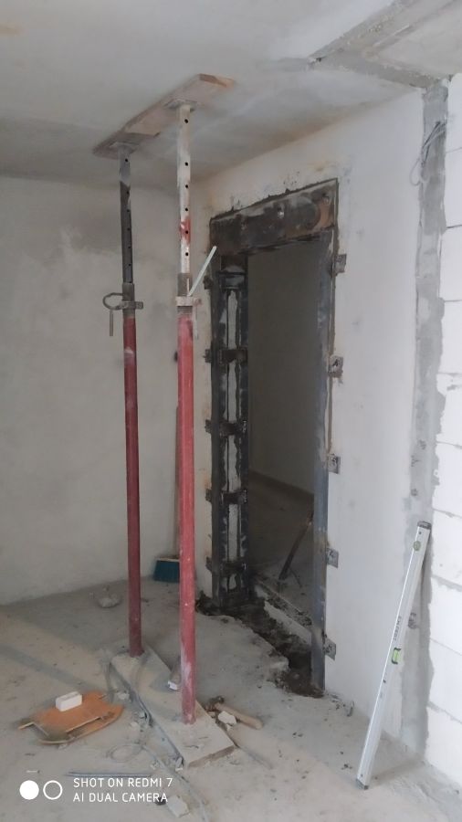 Усиление проемов помещений, стен, окон, плит перекрытия металлоконструкциями. Сварочные работы. Изготовление проектной документации и вывоз мусора.