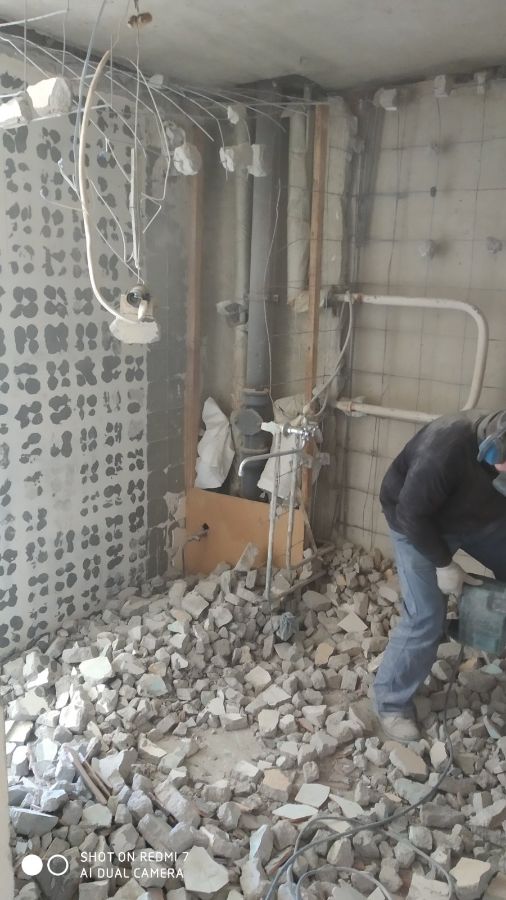 Демонтаж покрытия полов, плитки, старого паркета, снятие штукатурки, бетонной стяжки, дверей, металлоконструкций. С уборкой и вывозом мусора
